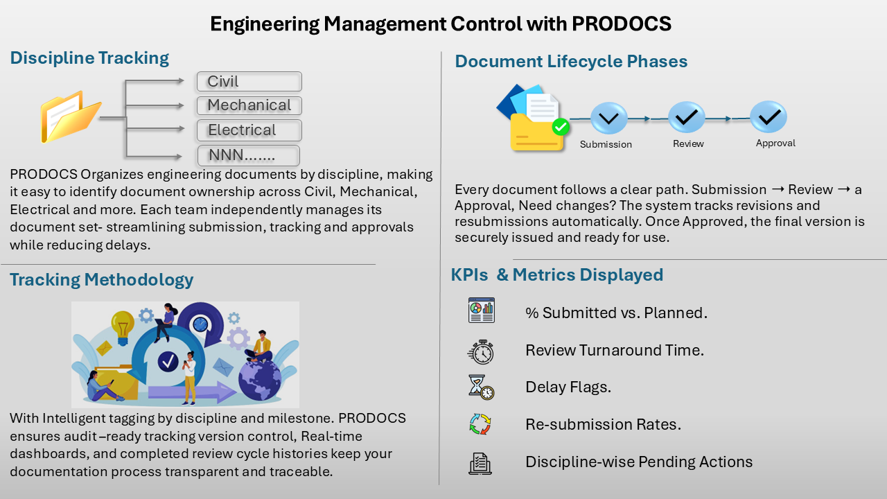 PRODOCS is an Engineering Document Management and Reporting System designed to automate document tracking, ensure milestone-wise visibility, and deliver real-time analytics for smarter decision-making.